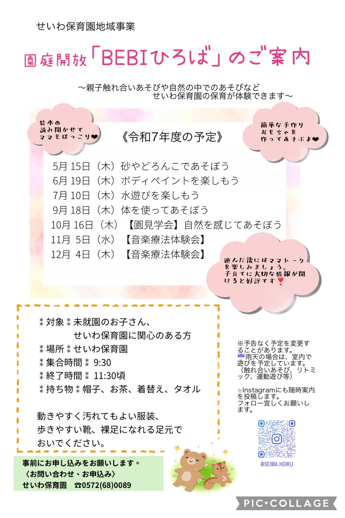 令和7年度 園庭開放「BEBIひろば」開催のご案内(年間のご案内添付)